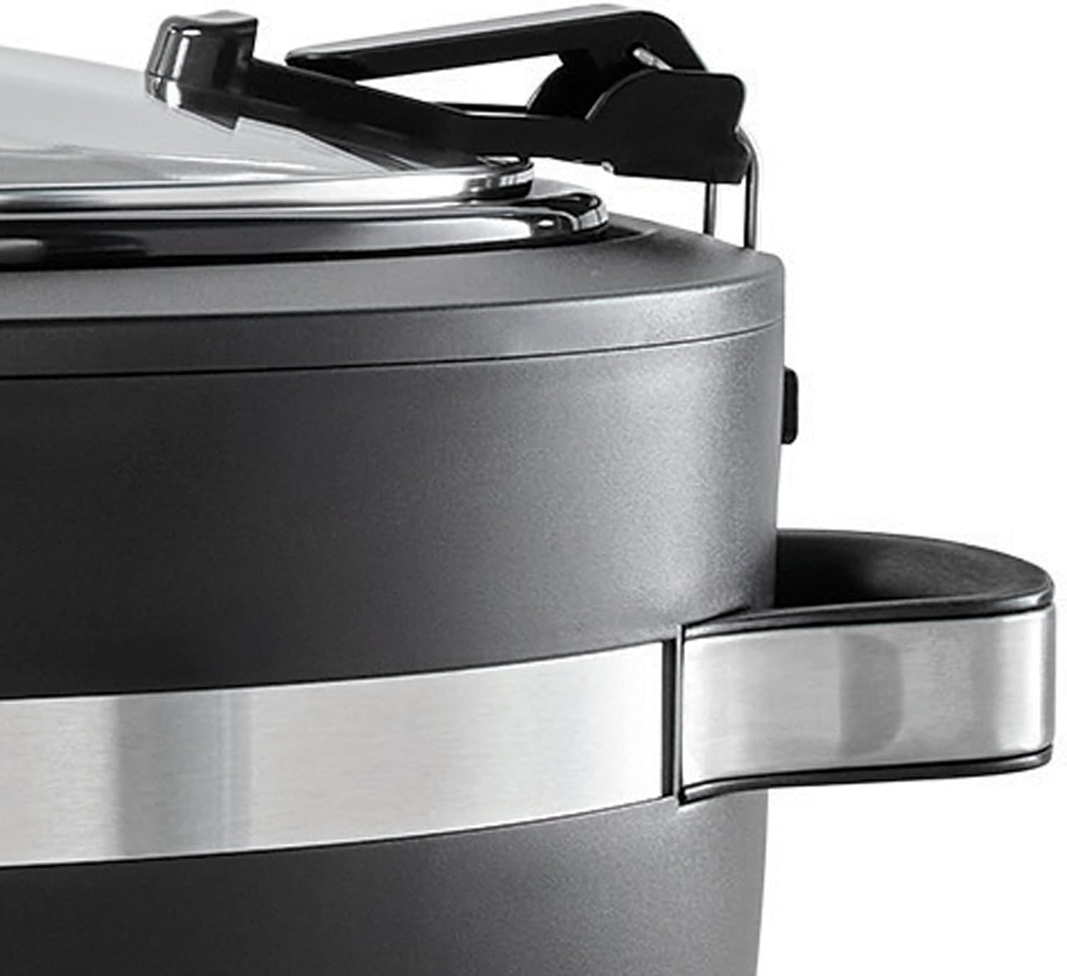 The Crock-Pot thermoshield cook and carry programmable slow cooker with locking lid features insulated external sides that reduce the surface temperature by up to 50%*, without affecting the cooking temperature inside. Plus, the cook & carry secure-fit locking lid creates a tight seal between the stoneware and lid to ensure contents won't leak. Now you can take your meal to parties, tailgates, potlucks and more, knowing that it will arrive safely, without any messes or spills to clean. Compared to SCCPCT600-B sccpvc600-p